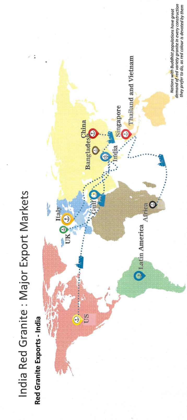 UK & Italy are the dominant market of exports of Indian red granite having shares around 20%